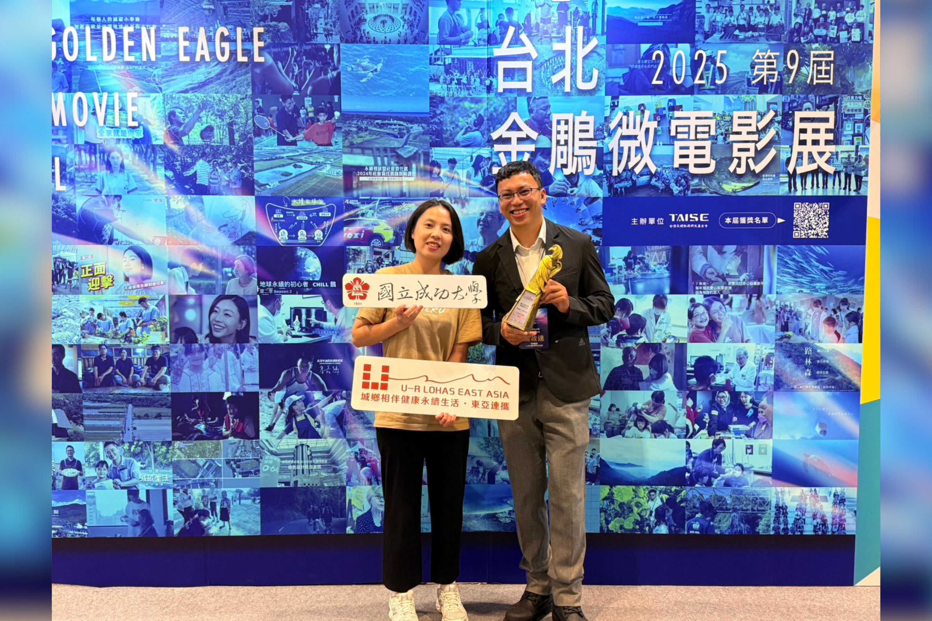國立成功大學執行大學社會責任實踐計畫(USR)表現亮眼獲肯定。「2025 第九屆台北金鵰微電影展」成大「惡地協作」、「城鄉相伴」2 組 USR 計畫團隊作品分別榮獲「永續微電影獎」金獎、銀獎。獎項 9 月 12 日在亞太永續博覽會舉行頒獎典禮,分別由「城鄉相伴」計畫主持人暨人文社會科學中心主任楊政達特聘教授、以及「惡地協作」計畫共同主持人建築系簡聖芬副教授代表領獎。