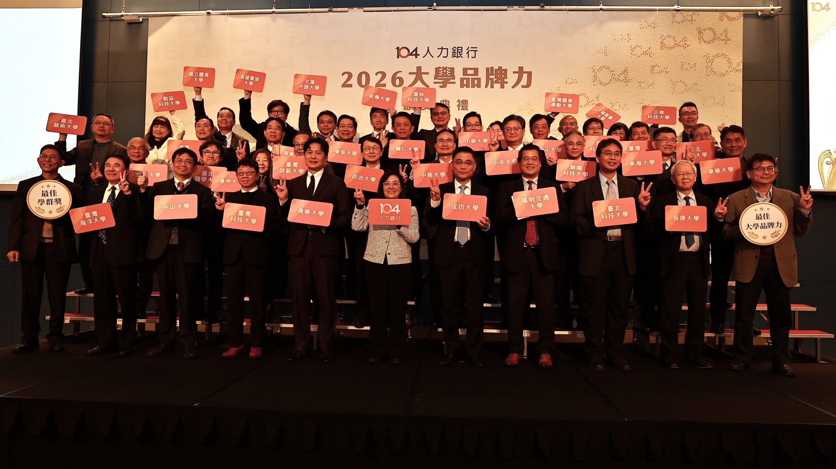 104 人力銀行職涯永續長王榮春分析,2026 年「最佳大學品牌力」前 10 所學校皆為國立大學,9 所與去年相同,顯示大學品牌力需長期經營,非一蹴可幾。