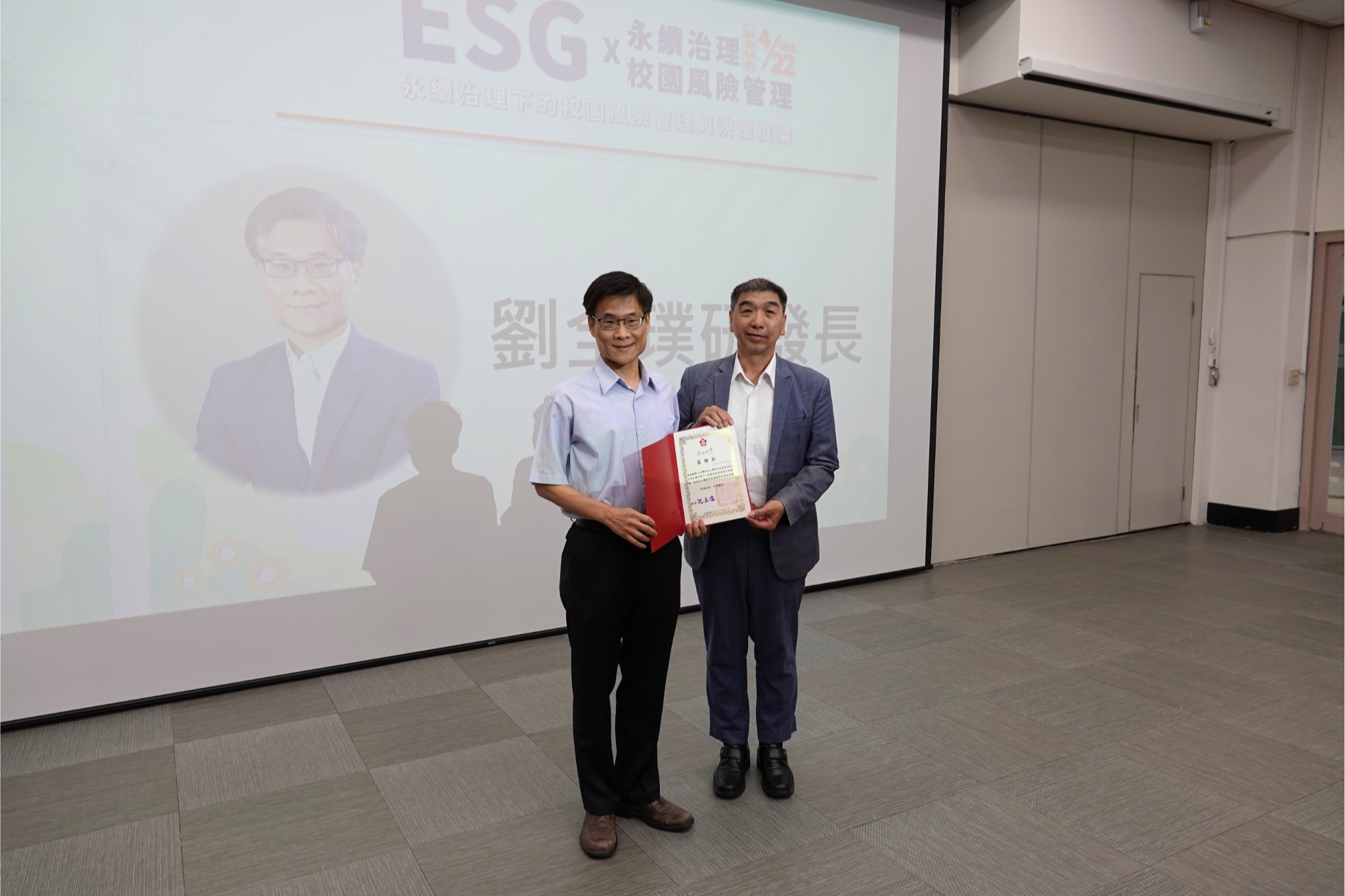 演講亦進一步聚焦校園永續風險與機會辨識實務,從「實體風險」與「轉型風險」出發,說明大學如何導入跨域合作與外部專業資源,發展具體解方,並以風險管理驅動永續行動,將策略落實為可執行的治理機制。此一模式不僅強化校園治理韌性,更促進大學由知識傳遞者轉型為社會問題解方的實踐者,彰顯其在永續發展中的關鍵影響力。