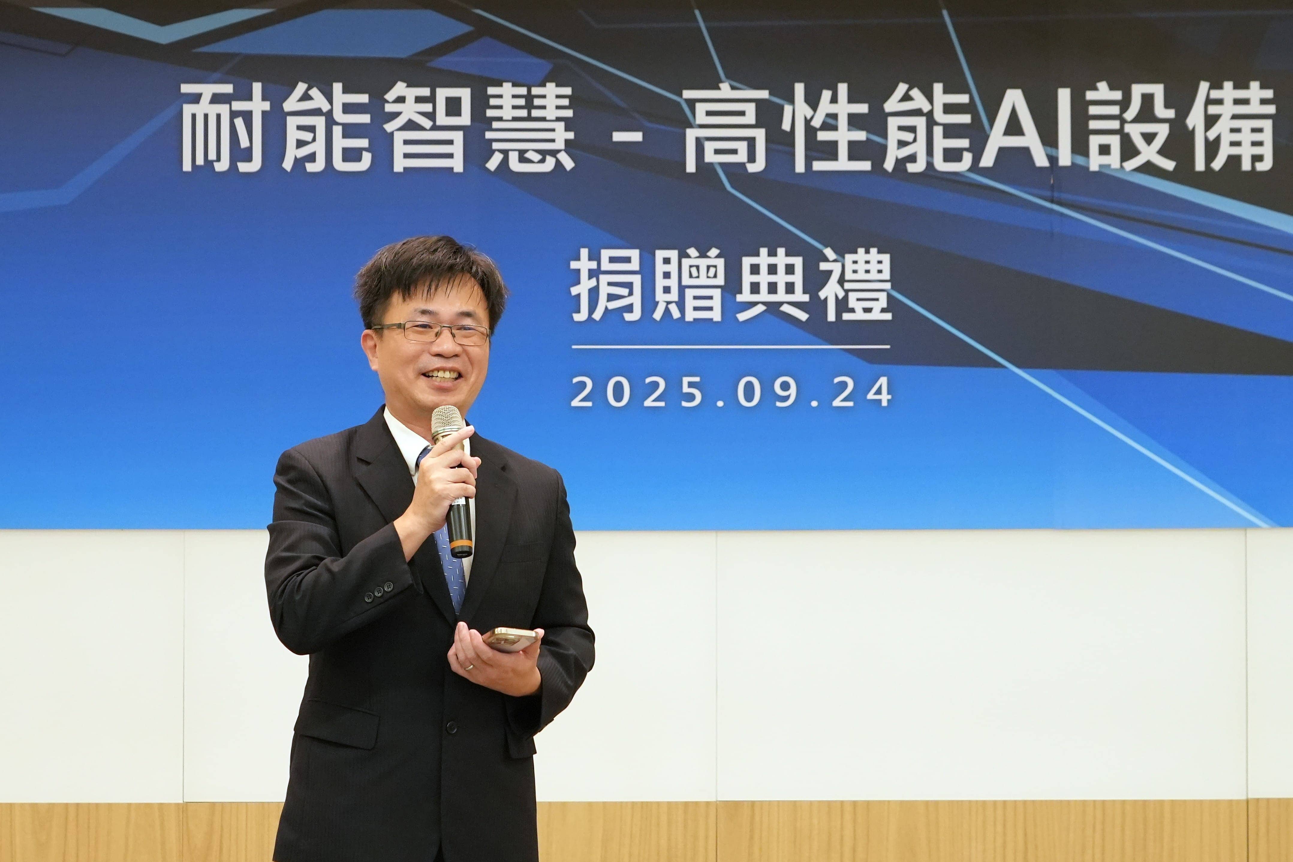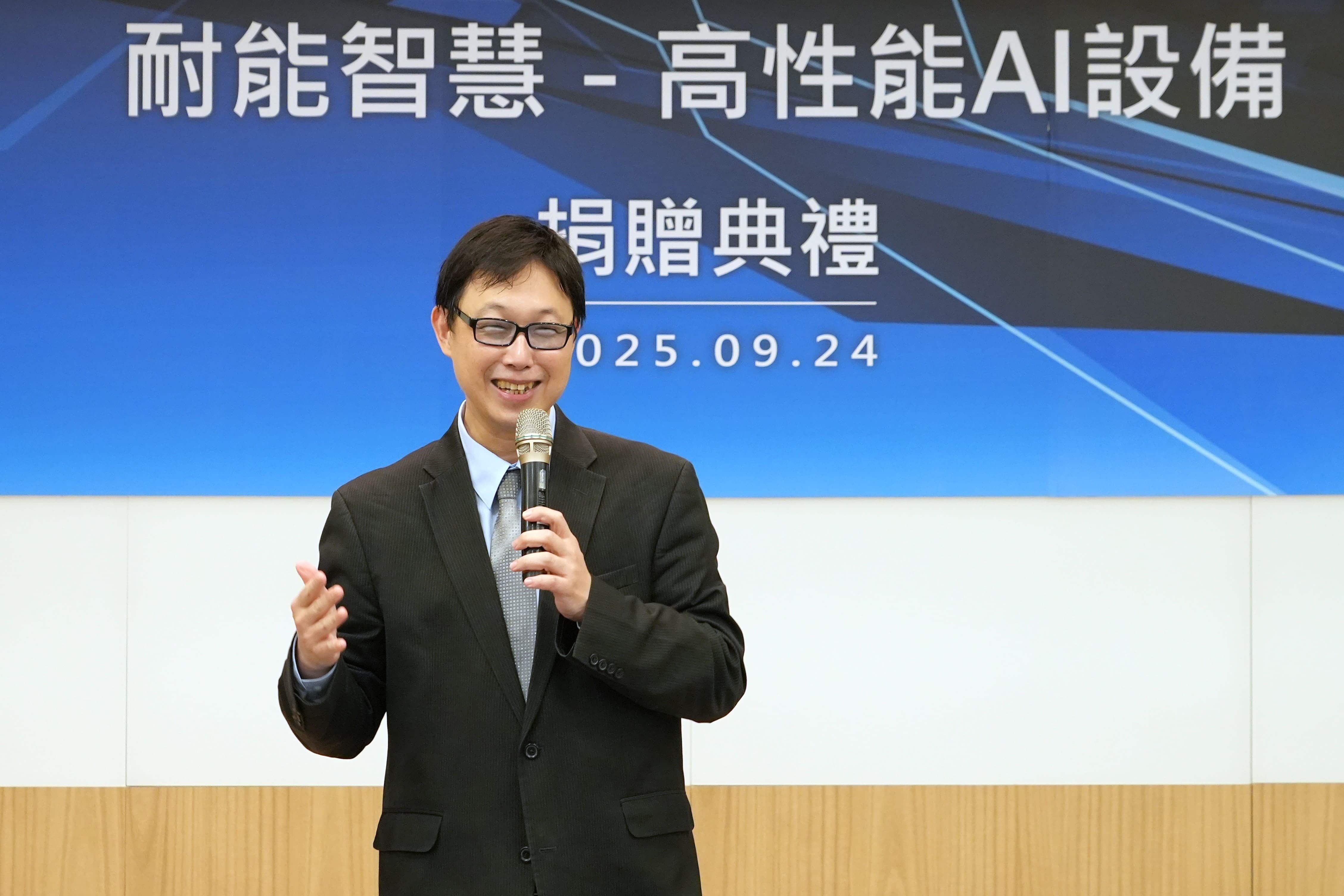成大電機系楊慶隆副主任代表系所致謝並表示,當 2022 年被視為「AI 元年」時,耐能早在 10 年前就以前瞻視野投入人工智慧領域,並勇於實踐創業理想,如今更以傳承精神回饋母系,展現善的循環與深厚情誼。他指出,本次捐贈不僅提供了寶貴的研發技術資源,更展現系友對母系的深厚情懷。未來這批設備將投入課程教學、跨領域專題與 AI 研究計畫,期盼能培育更多將理論落實於實務的優秀 AI 人才,並貢獻所能於科技與社會。他並以「耐寒傲雪心志成,能忍萬難建奇功」濃縮 4 個字「耐能成功」,象徵未來耐能公司能成功上市,也與母校成功大學持續緊密合作。