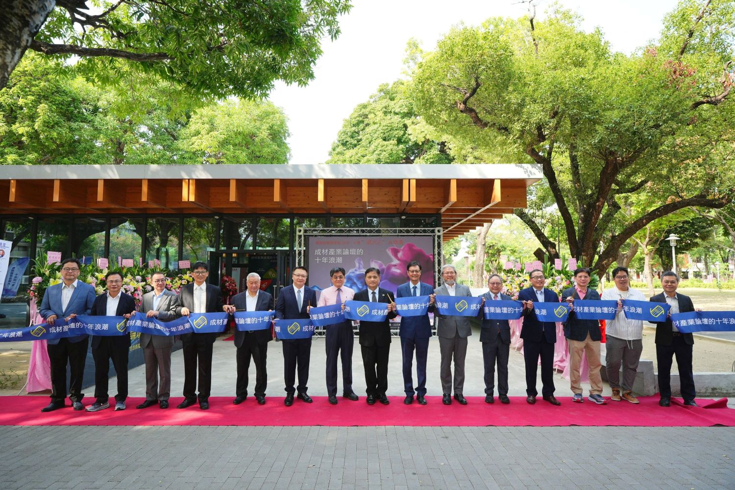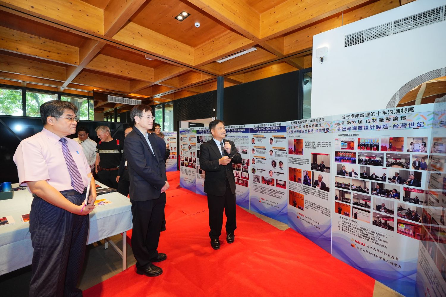 7 日上午舉行的「成材產業論壇的十年浪潮」展覽開幕活動,邀請歷屆重要講者與業界重量級貴賓齊聚,共同見證論壇邁入雙位數的新篇章。典禮由張始偉副校長、材料系主任許文東、系友會會長楊偉文及歷屆論壇代表共同揭幕,場面隆重熱烈。張始偉副校長代表沈孟儒校長出席致詞表示,「成材產業論壇」在校內掀起跨域交流及產業對話的風潮,帶動其他系所陸續舉辦相關活動。他強調,成大能有今日的成就,在於系友與校友的支持。成大能為社會發揮影響力,是行政與學術團隊最重要、也持續努力的方向。