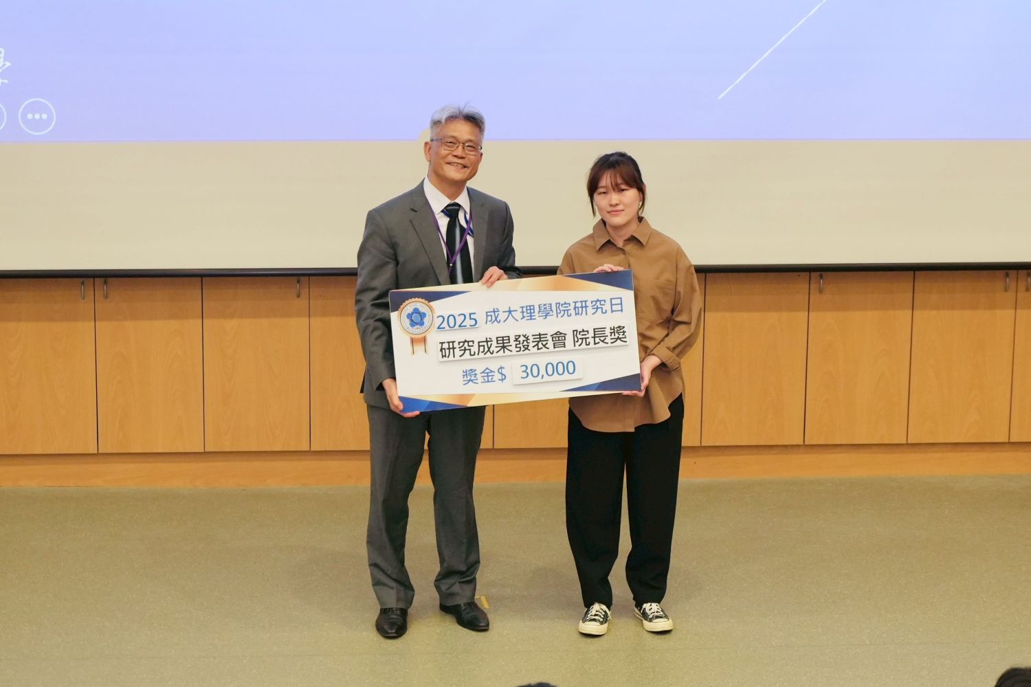 理學院院長獎由光電科學與工程學系黃卓敏同學(右)獲得