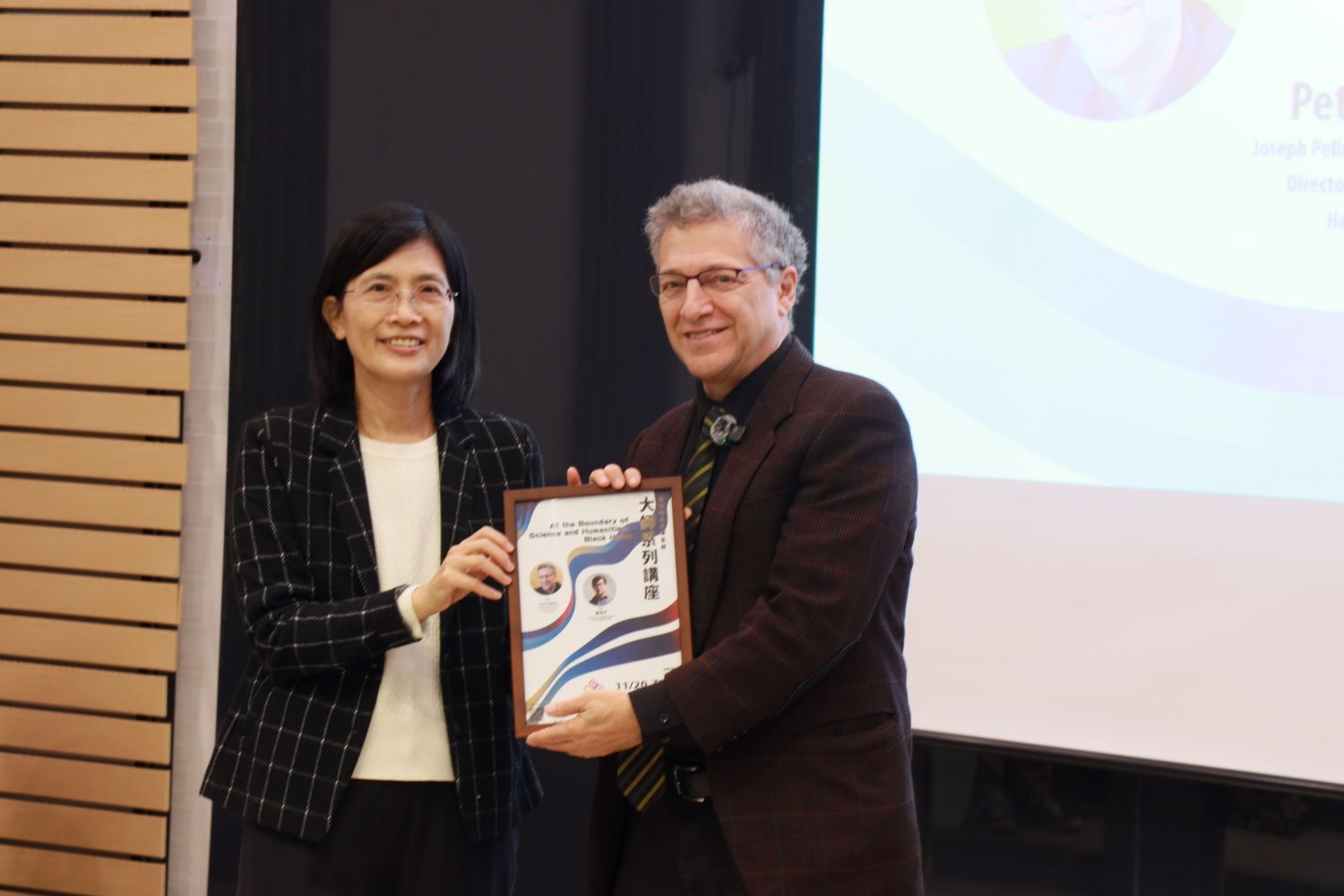 陳玉女副校長致贈禮品予哈佛大學教授 Peter_Galison 表示感謝