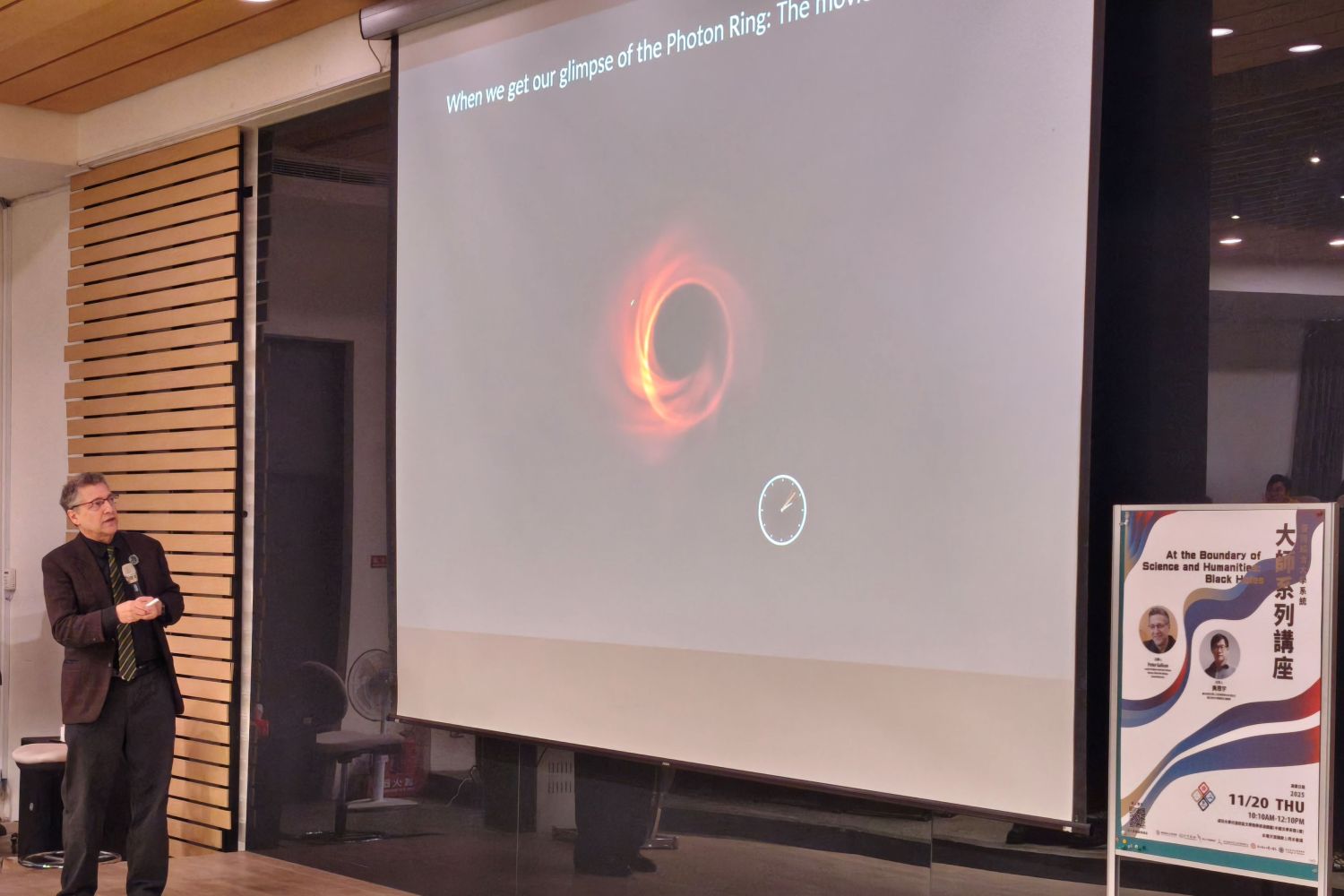 Peter Galison 教授在講座中深入探討黑洞影像的多項議題。以黑洞攝影為例,說明科學與人文如何在知識邊界交會。他回顧自 2015 年啟動的黑洞拍攝計畫,以及 2016 年黑洞倡議(Black Hole Initiative, BHI)的成立,也分享此項任務所面臨的挑戰,包含單一望遠鏡無法獨自完成拍攝,必須透過分布全球的多座望遠鏡協同合作;如何統整不同團隊的作業;以及在各團隊分別取得影像後,如何對多張黑洞影像進行平均化與理想化的處理。Galison 亦談及最終影像發布後引發的廣大關注,從科學界到一般民眾所展開的大量討論,凸顯黑洞影像在科學傳播與公共理解中的重要意義。