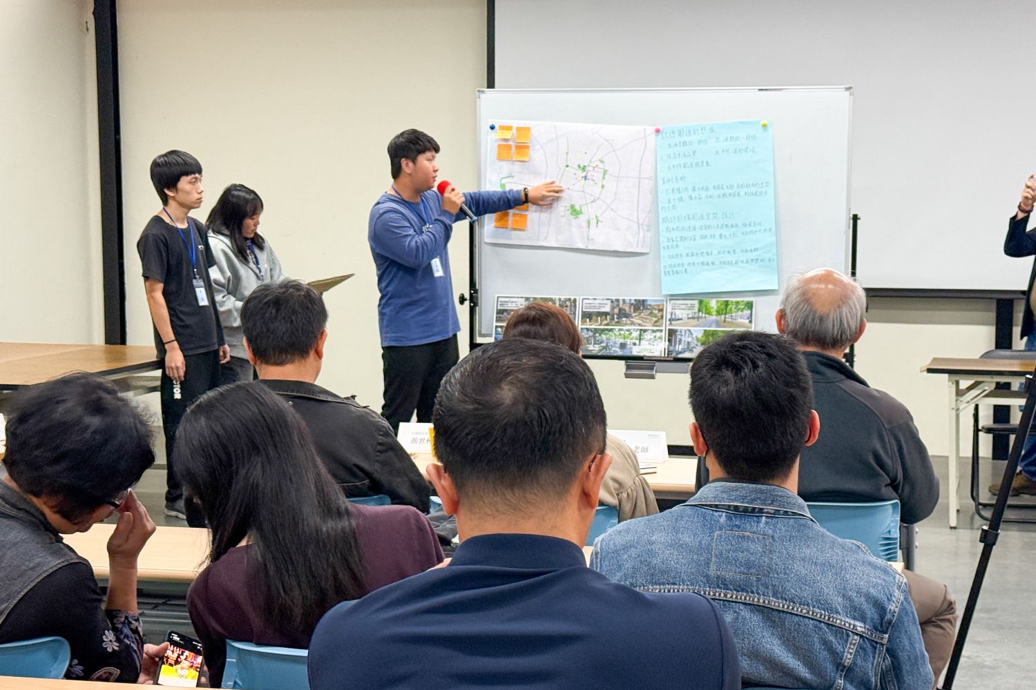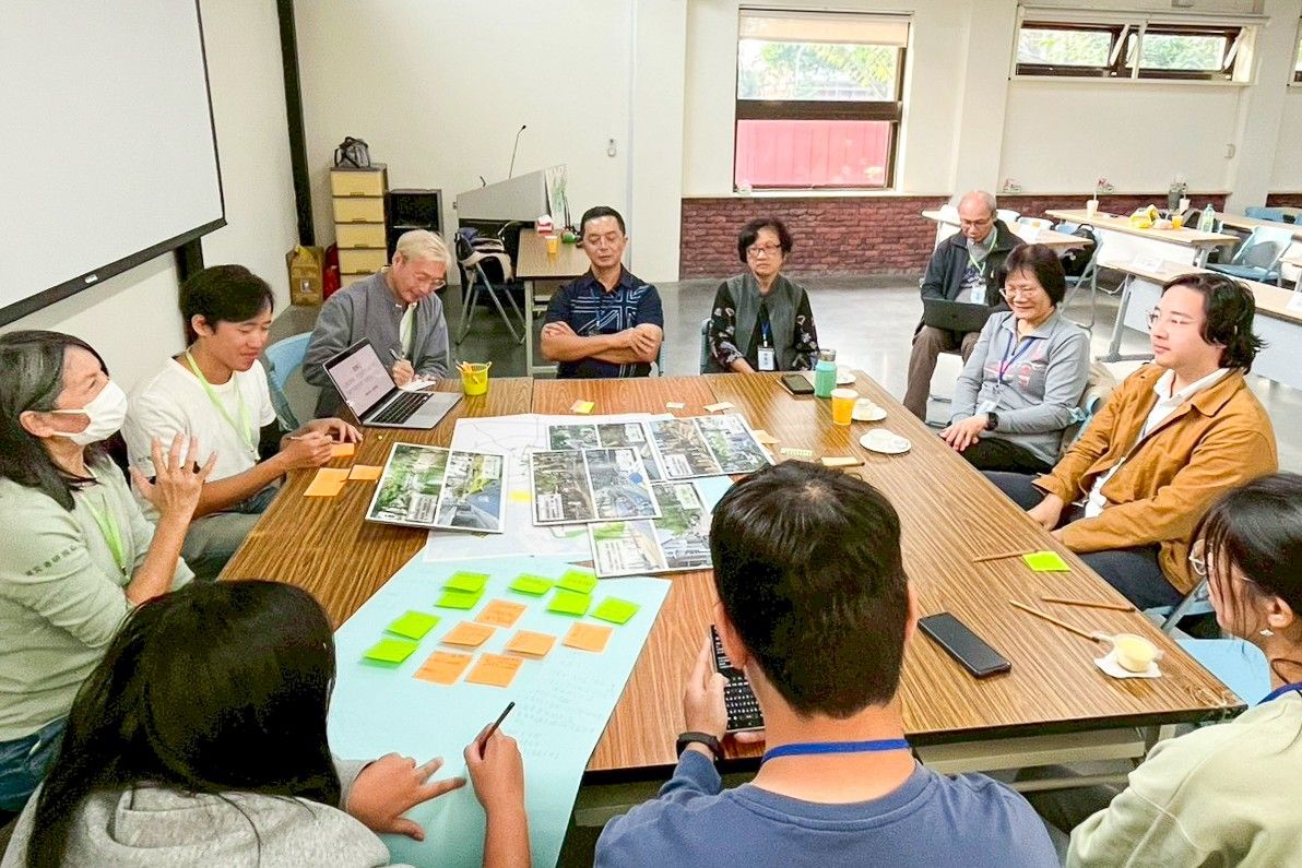 活動開始先針對 4 大主題進行短講引導思考,緊接著進行 2 輪的工作坊分組討論。都計系李子璋老師與台南社大綠交通研究社曾德平社長談「城市宜行,是一場生活設計」、古都保存再生文教基金會顏世樺執行長談「歷史都市格局」,建築系盧紀邦老師談「超高齡社會與社區共生」以及台南新芽嚴婉玲理事談「氣候變遷與城市風險」。由桌長與助理協助引導與記錄,從市民經驗、專業觀點與未來治理視角交織討論基礎。