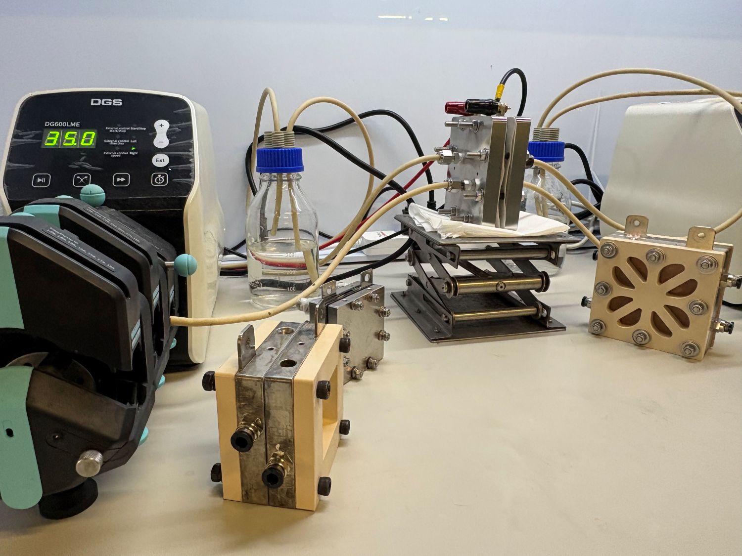 整體測試結果顯示,在 1 A cm⁻² 電流密度下,系統可於約 1.89 V電壓穩定運作,並可長時間產氫(接近 600小時),展現接近 100% 的法拉第效率與良好的能量轉換表現。同時,在單電池驗證成果基礎上,團隊亦已建立多電池堆疊系統之設計與操作能力,並於低電流密度條件下達到接近美國能源部 2030 年技術指標。預計於今年 5 月底完成約 3 kW 等級系統建置,目前相關技術亦已申請專利。