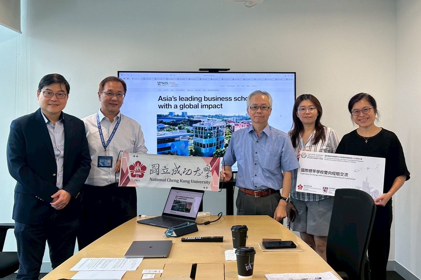 為積極鏈結國際高等教育發展趨勢並強化教學與研究能量,國立成功大學都市計劃學系透過教育部「國家重點領域國際合作聯盟 ( University Academic Alliance in Taiwan,簡稱 UAAT ) 創新課程與人才培育計畫」,於 4 月 20 至 21 日由胡太山系主任率領,前往 2026 年 QS 世界大學排名第八名的新加坡國立大學(National University of Singapore)進行學術交流,拜會都市計劃所、建築系、建成環境系及不動產系等學術單位。此行成大參訪團成員包括趙子元教授、張秀慈副教授、鄭皓騰副教授及宣奕帆同學。雙方透過多面向學術交流,深化課程發展與空間規劃設計領域合作。